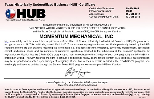 (817)–624–0024 Momentum Mechanical – 2504 Gravel Drive – Fort Worth, TX 76118